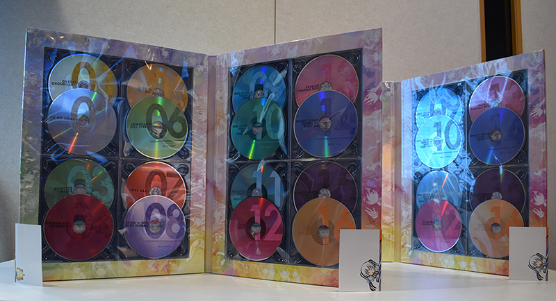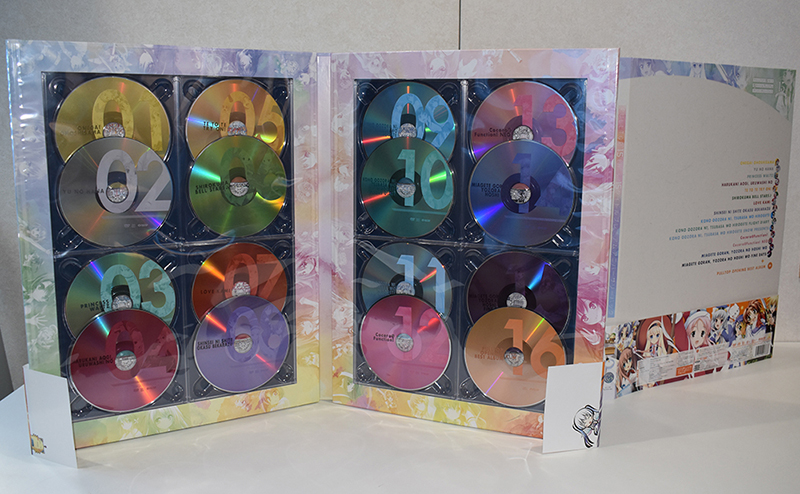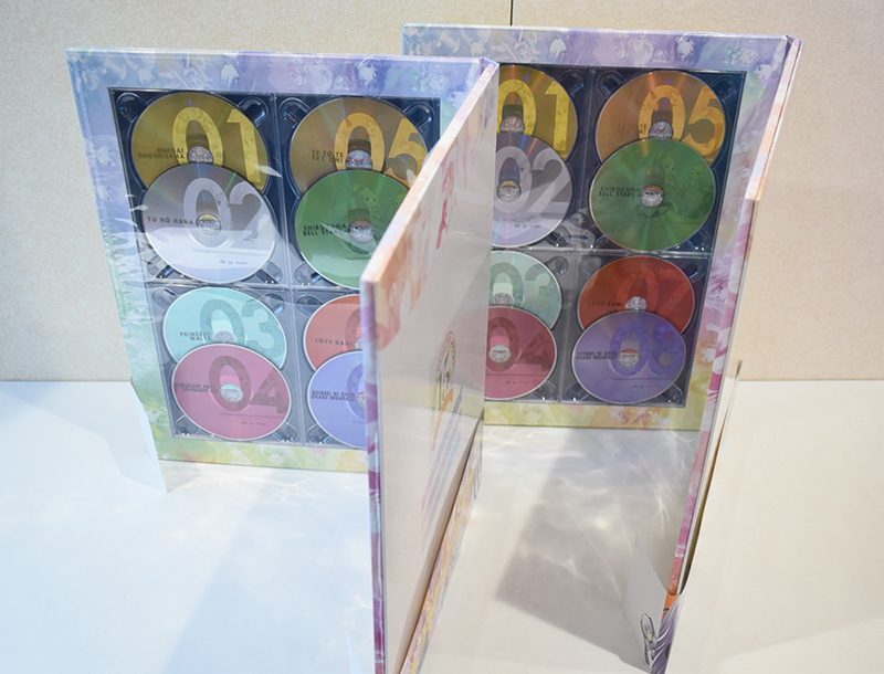 16枚組(B6_2枚トレー/8セット)見開き69.5×43.5包みジャケット B6_2枚トレーを片面に4トレー(8ディスク)を貼り付けし両面で8トレー(16ディスク)をセットした豪華版。トレーを支える厚紙部分にも印刷、ディスク面にはビニールで保護したこだわりの作品です。最終的にな仕上がりはOPP袋の仕上げになります。B6_2枚トレーを片面に4トレー(8ディスク)を貼り付けし両面で8トレー(16ディスク)をセットした豪華版。