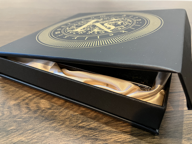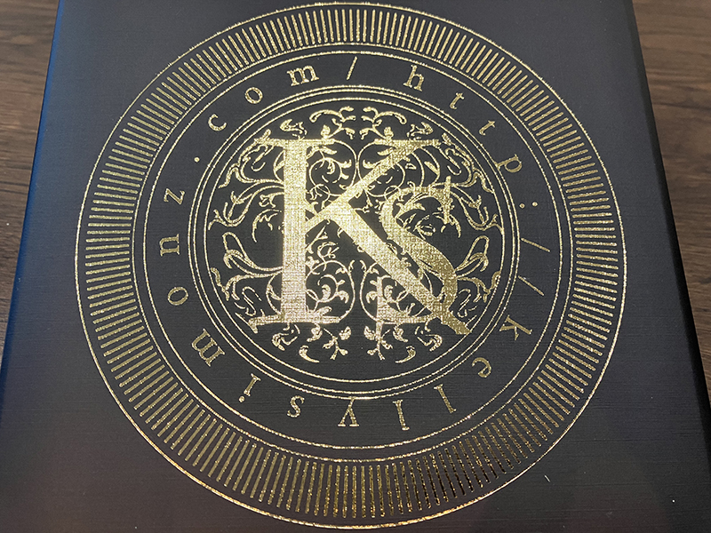 表面には金の箔押しで細かな線までしっかりと表現されているところが技術の高さを表しています。